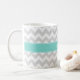 Mug Lt Gray Wht Chevron Aqua Turquoise Nom monogram