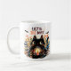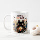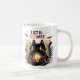 Éclairer les nuits fraîches d'automne avec cette tasse magique! Un chat noir aux yeux larges tenant une bougie brillante est l'image parfaite pour les soirées d'Halloween. Entourée de feuilles d'automne et de chauves-souris subtiles, la conception mélange chaleur et mystère dans une mesure égale. Parfait pour siroter du thé ou du cacao aux chandelles. Cette tasse fait un grand cadeau aux amoureux de la mystique et macabre.