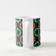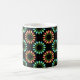 Cette tasse festive présente une motif à thème de vacances composée de cercles composés d'ampoules graphiques de Noël aux couleurs rouge, orange, vert et bleu.
