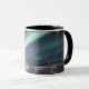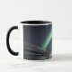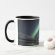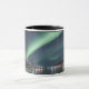 Photographie de paysage de verdure aurores boréales (Aurora borealis) reflétant dans un fjord gelé sur la côte nord de la Norvège, Scandinavie.