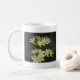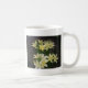 Des lys blancs crémeux qui semblent éclater contre un arrière - plan noir sont présentés sur cette tasse.