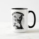 Portrait noir et blanc d'un mini schnauzer avec lunettes sur un arrière - plan couché de soleil en style vintage. Le cadeau parfait pour les amateurs de schnauzer.