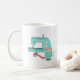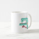 Cute machine à coudre de style vintage dans les tons menthe et rose avec un coussin d'épingle de tasse à thé assorti et ruban de mesure. Si vous êtes l'un des nombreux amateurs de couture, vous aimerez prendre votre boisson du matin dans cette tasse amusante.