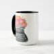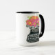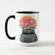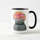 Un tableau lumineux et heureux d'une machine à écrire antique débordant de pavots roses et oranges - quelle tasse amusante et de lever le coeur pour votre café du matin ou un beau cadeau pour le poste de travail d'un ami! La conception apparaît de part et d'autre de la tasse si appropriée pour une personne de droite ou de gauche. L'illustration originale a été peinte à la main par l'artiste. : -)