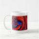 avec un design original de peinture aquarelle de Sacha Grossel de grande taille, rapprochée, macro style rose rouge avec des tons bleus. Cette fleur anglaise traditionnelle aux pétales cramoisis a un design coloré intense et lumineux qui traduit l'abstraction de la forme botanique et des thèmes de l'amour et de la passion.