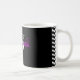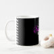 Une tasse noire avec une vague noir et blanc motif complété avec votre script de fantaisie monogramme de couleur magenta au centre. Il vous suffit de remplir les modèles de la fonction "personnaliser" et de choisir votre tasse de style.
