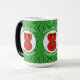 La tasse à morphing magique présente un ange marocain, habillé dans le drapeau du Maroc, à l'intérieur d'un cercle fractal blanc de carrés grossiers. Le cercle est sur un arrière - plan fractal vert de carrés grossiers. Ajoutez un nom, un jour férié et une année pour personnaliser votre tasse en cadeau ou pour ajouter à votre décoration de vacances. Belle décoration de Noël. Le design se déroule sur trois côtés de la tasse. Utilisez l'option "modifier la conception" pour modifier la police et/ou la couleur du nom, du jour férié et de l'année.