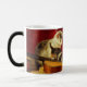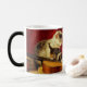 Tasse magique présentant l'huile sur toile de Henriëtte Ronner-Knip intitulée Faire de la musique (1900). Une chatte observe ses deux chatons jouer avec une guitare tandis qu'un autre chaton griffe un rideau rouge et qu'un autre se cache derrière des livres. Un cadeau merveilleux pour les amoureux des chats et les amateurs de romantisme.