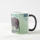 Magic Mug avec la peinture à l’huile de Frederic Remington The Belated Traveler (1906). Un cowboy frappe sur une porte cabine au milieu d'une neige hivernale. Il tient les rênes d'un cheval brun à ses côtés. Un cadeau parfait pour les amateurs de chevaux et le Vieux-Ouest.