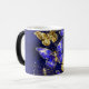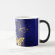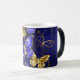 Composition des luxueux papillons saphir et bijoux en or sur arrière - plan bleu texturé.