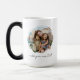 Create your own custom photo heat changing mug. Features two of your favorite pictures in a circle shaped watercolor brush stroke frame and personalized text for any occasion. A great gift for family and friends or your own photo memory keepsake.