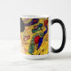 Mug magique avec la peinture à l’huile de Gustav Klimt Lady with Fan (1918). Une femme portant un kimono bleu tient un ventilateur rouge contre un arrière - plan jaune coloré de fleurs et de paons. Un grand cadeau pour les amateurs de Japonisme et d'art européen.