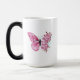 Flower arrangement of pink butterfly with rose Japanese cherry blossoms on white background.