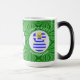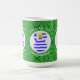 La tasse à morphing magique présente un Angel Grec blond, habillé dans le drapeau de la Grèce, à l'intérieur d'un cercle fractal blanc de carrés grossiers. Le cercle est sur un arrière - plan fractal vert de carrés grossiers. Ajoutez un nom, un jour férié et une année pour personnaliser votre tasse en cadeau ou pour ajouter à votre décoration de vacances. Belle décoration de Noël. Le design se déroule sur trois côtés de la tasse. Utilisez l'option "modifier la conception" pour modifier la police et/ou la couleur du nom, du jour férié et de l'année.