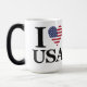 Découvrez la magie du patriotisme avec cette tasse "I ❤️ USA" qui change de couleur ! Regardez comme le design audacieux "I ❤️ USA", avec le drapeau américain dans le coeur, se révèle quand vous versez dans une boisson chaude. C'est une délicieuse surprise pour votre café ou thé du matin, parfait pour célébrer les fêtes nationales, donner à un Américain fier, ou simplement ajouter une touche d'émerveillement patriotique à votre quotidien. Cette tasse unique est une façon amusante et interactive de montrer votre amour pour les États-Unis.