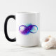 Infinity symbole with a beautiful feather painted in purple and blue bright colors on white background
