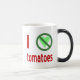 Je déteste les tomates. Création humoristique utilisant des lettres rouges, un cœur vert et le signe international "NON" pour lire "Je déteste les tomates". Pour ceux qui n'aiment pas les pommes "à cœur".
