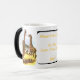 Cette illustration est celle d'une famille de girafes dans la brosse. Quelques arbres et beaucoup d'herbe. Le ciel est bleu clair avec des nuages. Un cadre est autour du centre de la tasse avec "Fête des pères 2014" et à et peut être customisé avec vos propres informations. Ce design est présenté sur des styles, des couleurs et des tailles assortis.