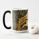 Mug magique avec la tapisserie médiévale La licorne en captivité (1495-1505). La septième tapisserie de The Unicorn Tapestries, également connue sous le nom de The Unicorn Rests in a Garden, montre une licorne blanche avec un collier bleu assis à l'intérieur d'une clôture. L'herbe verte et de belles fleurs entourent la licorne. Un cadeau fantastique pour les collectionneurs d'art médiéval et les amateurs d'imaginaires !