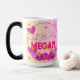 Celebra a mamá con esta taza personalizable. Con detalles de granos de café en color tonos rosados, mensaje "Mom Fuel" y fondo en rosa pastel y amarillo, es el regalo perfecto para las amantes del café.