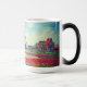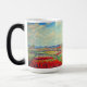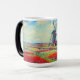 Magic Mug avec la peinture de la fleur et du moulin de Claude Monet. De beaux champs colorés de tulipes rouges, roses et jaunes à côté d'un moulin et d'une maison en Hollande. Un grand cadeau Monet pour les amateurs d'impressionnisme et d'art français.