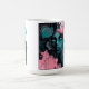 Composición más expresiva y abstracta: rostro femenino con contrastes bicolor, trazos fluidos, manchas y líneas que generan movimiento y profundidad. La flor central actúa como sello botánico de la colección, manteniendo la estética neon teal & pink para una línea uniforme en cojines, sudaderas y pósters.