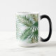 Design tropical en été pour la plage et les loisirs dans les tons verts et dorés pour une maison de campagne et une terrasse. Il est agréable de boire du café dans une tasse avec un motif naturel assis dans un transat sur l'océan.