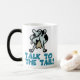 La petite fille qui a reçu pour son anniversaire ce mug tout noir a été d'abord déçue puis émerveillée quand est apparue son héroïne la reine des neiges. RAS impeccable tant l'impression que les couleurs