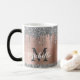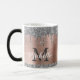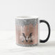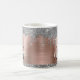 Parties scintillant moderne en argent girly dérive nom et monogrammed mug. Ce design présente des gouttes brillantes de parties scintillant gris argenté (gris) sur arrière - plan en métal brossé rose rose rousse rose avec personnalisation monogramme initial et modèle de texte de prénom. Grand cadeau féminin pour petite amie, mère, anniversaire, mariage, douche nuptiale, fête de 16 ans, affaires, travail professionnel et pour toute personne qui aime des choses brillantes et glamour. Veuillez noter que ce design est imprimé effet photo aucune parties scintillant réelle.