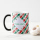 Morphing mug with a tiled Mexican flag pattern covering the full printable area. Both sides feature a white fractal squiggly‑square patch with your custom name in green text. Perfect for Mexico family reunions, Cinco de Mayo, Mexican Independence Day Sept 16, cultural pride, and everyday use.