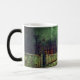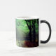 Mug magique mettant en vedette le tableau de John Atkinson Grimshaw Une soirée illuminée (1880). Une lune hantante remplit le ciel nocturne de l'Angleterre victorienne en tant que femme dans une rue bordée d'arbres. Devant elle se trouve un bâtiment éclairé. Un grand cadeau pour les amateurs de romantisme et d'Angleterre victorienne.