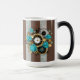 Mug Magic Steampunk Clock and Turquoise Roses on Striped