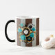 Mug Magic Steampunk Clock and Turquoise Roses on Striped