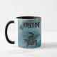 Sur cette tasse rêveuse sont peintes des nuances de bleu avec des superpositions brillantes et brillantes créant un art moderne magique et fantasque, ainsi qu'une tortue de mer noire tribale tourbillonnante avec des gouttes de citron doré pour ajouter de la fantaisie. Peut être personnalisé