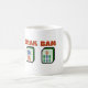 Le design amusant de tasse de café pour les amateurs de Mahjong comprend du texte et des tuiles pour chaque costume "Dot", "Crak" et "Bam"