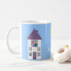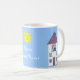 Tasse blanche à la maison douce à la maison personnalisable avec une illustration mignonne de bande dessinée d'une jolie maison avec un jeune couple et leurs animaux familiers regardant hors des fenêtres un jour ensoleillé sur un arrière - plan bleu avec la frontière lilas. Un cadeau doux et adorable de pendaison de crémaillère pour une famille qui s'est juste déplacée ou pour nouvellement un couple d'épouser. Également une tasse d'amusement pour de vrais agents immobiliers ! Vous pouvez déplacer, remettre à la côte, ou enlever les éléments l'uns des de conception. Le texte, la police, la couleur d'arrière - plan et la frontière sont personnalisables. Choisissez le style, la couleur et la taille de votre tasse. Si vous avez besoin de n'importe quelle aide en customisant votre produit svp me contactez par mon magasin et je serai davantage qu'heureux d'aider.