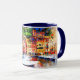 Jolie tasse en céramique faite dans un impressionniste comme la peinture de maisons colorées sur le front de lac. Customisez d'ajouter votre propre texte.