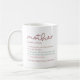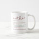 Donnez à maman la reconnaissance qu'elle mérite avec cette tasse à café Mère Définition ! Avec une définition sincère et humoristique de "Mère"—"Une personne qui fait le travail de beaucoup. Gratuitement. Quelqu'un qui voit le meilleur chez ses enfants, même quand ils la rendent folle. Amour inconditionnel. Voir aussi : Superwoman, sainte, héros."—cette tasse résume parfaitement son amour et son dévouement sans fin. Que ce soit pour la Fête des Mères, son anniversaire, ou juste parce que, cette tasse est une façon réfléchie et amusante de montrer de l’appréciation pour la femme la plus importante de votre vie!