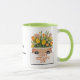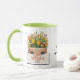 Une tasse à café de la Fête des Mères exquise avec un thème floral. Il comprend un grand bouquet de fleurs printanières comprenant des tulipes, des jonquilles et des marguerites. Le texte dit "Maman, Merci, Bonne Fête des Mères" sur le devant de la typographie moderne. Le dos de la tasse a de l'espace pour ajouter votre message pour le rendre plus unique. Consultez notre magasin pour connaître les produits correspondants.