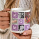 La 'Maman Photo Collage Purple Mothers Day Personnalisé Coffee Mug' est une façon charmante de célébrer et d'honorer maman. La tasse affiche fièrement le mot "MOM" avec chaque lettre sur un carré violet vibrant, encadrant des espaces pour des collages photo personnalisés. A côté des photos, il y a une section dédiée pour inclure un message d'amour, ce qui en fait un cadeau vraiment sincère. C'est un souvenir parfait que maman chérira avec chaque gorgée, pas seulement le jour de la fête des mères, mais tous les jours.