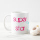 Cette Mug 'Superstar Mom' montre que votre maman est une étoile brillante dans votre vie avec une énorme étoile entourée de mini étoiles. Il fait un grand cadeau pour la Fête des Mères, aussi pour son anniversaire ou pour toute autre occasion spéciale. En bonus, il est aussi personnalisable en téléchargeant une photo de votre maman et en la plaçant au centre de l'étoile ! Il y a aussi la possibilité de choisir le style et la couleur de votre tasse.
