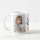 Cette tasse à café est le cadeau idéal pour toute mère lors d'occasions importantes comme le jour de la mère, Noël ou anniversaires. Cette tasse contient la citation "MOM tourné vers le bas WOW" en lettres rose vif et gris foncé, et est personnalisable avec deux de vos photos préférées
