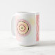 Sirotez une tasse design conçue avec un mandala aux couleurs douces rose, jaune et blanc.