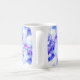 Cette tasse présente un design abstrait lumineux et fleuri, violet, lilas et magenta mandala. Les couleurs tournent autour d'une étoile bleue centrale.