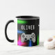 Manette de jeu vidéo de gamer Néon Nom Âge Mug. Manette de jeu sur des lumières néon colorées vives sur un fond noir. Ajoutez votre nom et âge. Idéal comme cadeau d'anniversaire pour un vrai gamer.