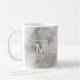 Tasse à café en marbre gris moderne et tendance avec un monogramme blanc audacieux des deux côtés.