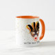 Cette tasse combo orange et blanc a l'image d'un Mardi Gras masques sur de petites étoiles dorées sur un arrière - plan blanc. Le texte de "Let the good times roll" se trouve sous le masque de chaque côté de la tasse. Customisez cet objet ou achetez tel que conçu. Couleurs : poignée et intérieur orange, arrière - plan blanc, étoiles dorées et masques dorés orange et noir. Images et texte imprimés sur.