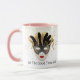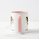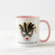 Cette tasse combo rose rose et blanc a l'image d'un Mardi Gras masques sur de petites étoiles dorées sur un arrière - plan blanc. Le texte de "Let the good times roll" se trouve sous le masque de chaque côté de la tasse. Customisez cet objet ou achetez tel que conçu. Couleurs : poignée et intérieur rose, arrière - plan blanc, étoiles dorées et masques noir et doré. Images et texte imprimés sur.