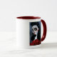 Portrait d'une femme portant le crâne de sucre jour du maquillage des morts avec des roses rouges sur fond de gris bleu