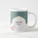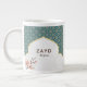 Mug de mariage élégant Arabesque – Arche dorée et sarcelle foncée avec magnolia aquarelle | Grand mug de luxe pour la mariée, le marié, anniversaire, cadeau de douche de mariée et d'Eïd.